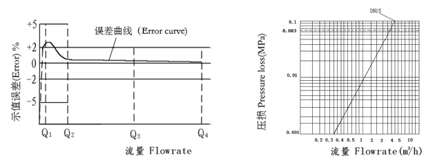 流量誤差曲線 FLOW-ERROR CURVE                                                壓力損失曲線 PRESSURE LOSS CURVE