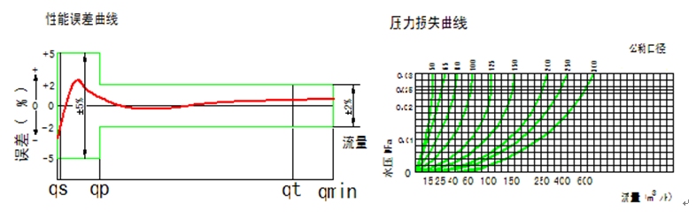 示值誤差限:從分界流量到最大流量為 ±3%;從最小流量到分界流量(不包括分界流量)為 ± 5%。