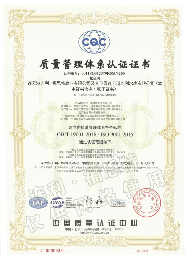 質(zhì)量管理體系認(rèn)證證書