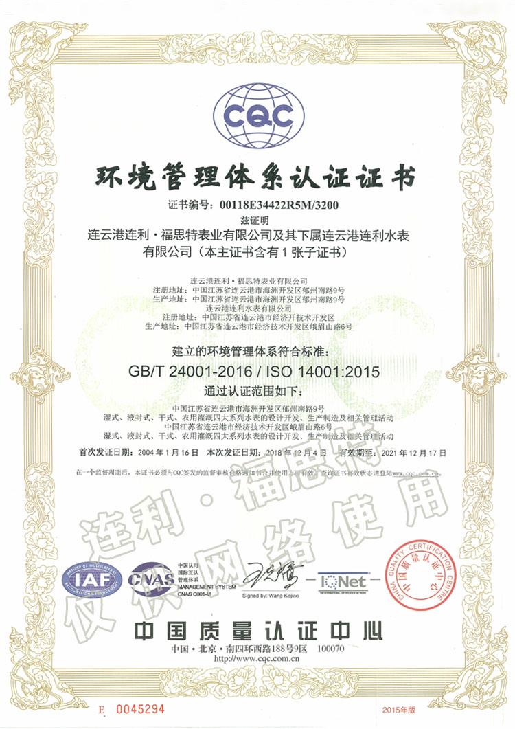 環(huán)境管理體系認(rèn)證證書