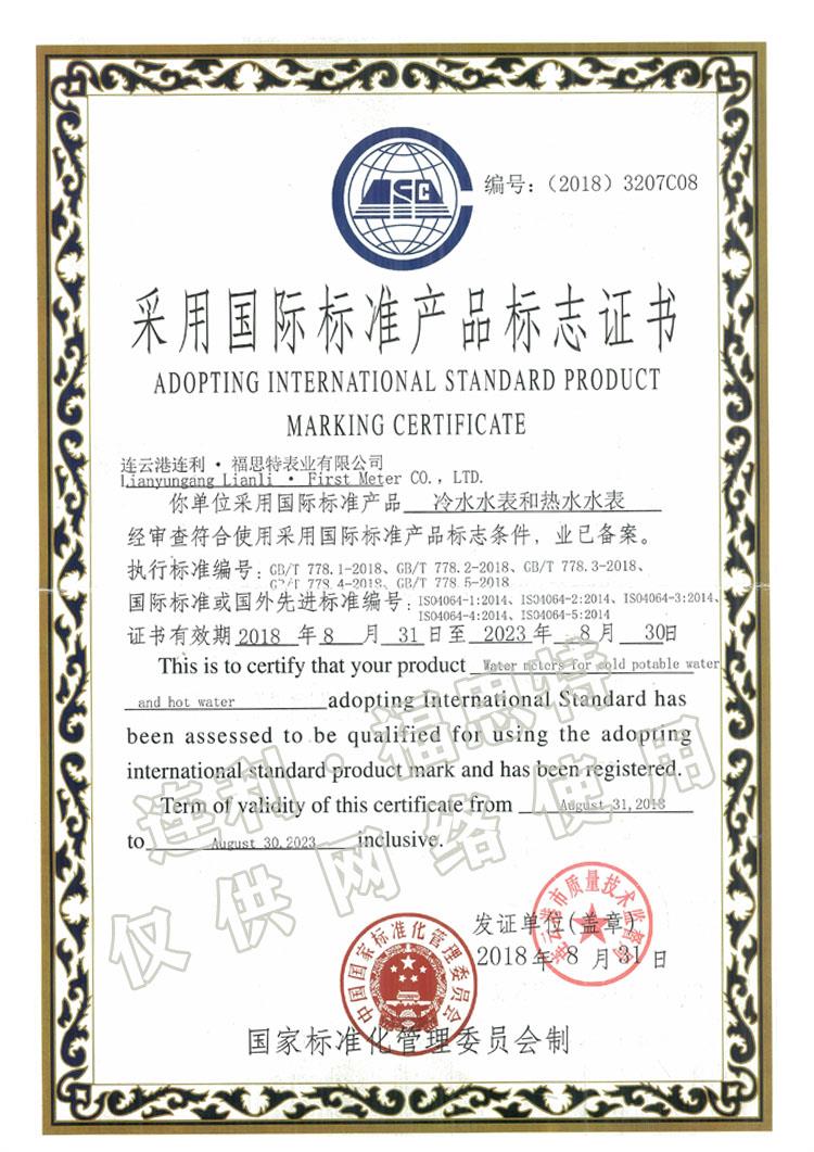 采用國(guó)際標(biāo)準(zhǔn)產(chǎn)品標(biāo)識(shí)證書...