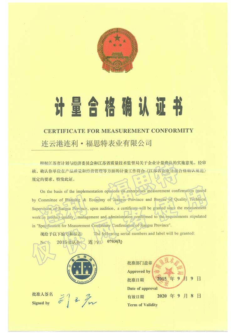 計(jì)量合格確認(rèn)證書
