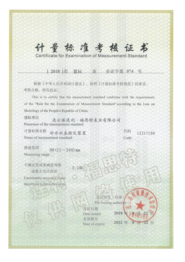 計(jì)量標(biāo)準(zhǔn)考核證書